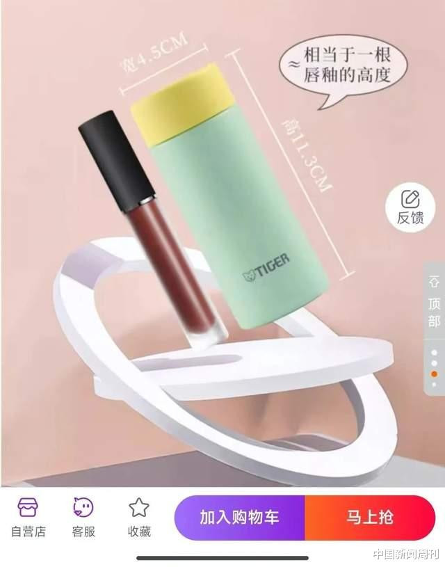 和iPhone比大小,正在成为不少保温杯产品宣称的“亮点”,更有甚者,选择和唇釉比长短,比如虎牌的一款120毫升的保温杯仅有113毫米,相当于一根唇釉的高度。